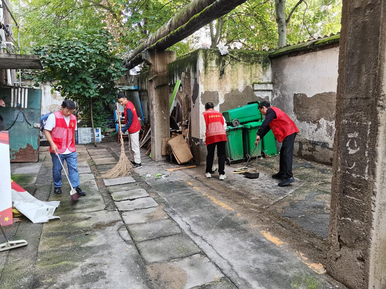 活动现场,商务局干部职工携带扫帚、簸箕、小铲子等工具,迅速投入到清洁工作中。大家分工明确、默契配合,重点对家属院公共楼道、绿化带、墙角旮旯等区域进行集中整治:有的弯腰清扫地面落叶与生活垃圾,有的徒手拔除绿化带内杂草,有的则用小铲子仔细清除墙面、单元门上的“牛皮癣”小广告,还有的主动协助居民规整楼道内堆放的杂物,引导大家养成文明整洁的生活习惯,共同维护社区环境。经过大家的共同努力,家属院内的路面干净整洁,绿化带焕然一新。